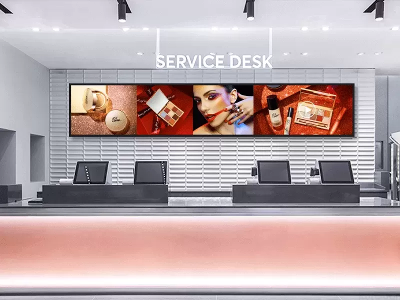 Tepi rak pasar raya runcit pintar paparan lcd digital regangan jalur sentuh bar monitor skrin pengiklanan