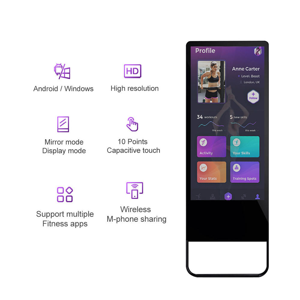 In high-end residential scenarios, hidden-design mirror devices display natural stone textures in standby mode, switching to fitness functions instantly upon voice activation. The children's exercise module demonstrates rope-skipping frequency and squat depth through animated characters, with AI algorithms automatically optimizing movement trajectories based on height. Executive home offices often feature 55-inch anti-blue light models enabling 7-minute HIIT sessions before morning conferences. Electromyography sensors monitor heart rate variability (HRV) via handles, generating stress index reports pushed to mobile devices for daily workload health alerts. Educational institutions deploy 86-inch floor-standing mirrors more innovatively, supporting synchronous motion capture for 32 students. Physical education teachers identify movement deficiencies through heat map analysis interfaces, while auto-edited session clips generate personalized improvement reports – dramatically enhancing teaching efficiency.