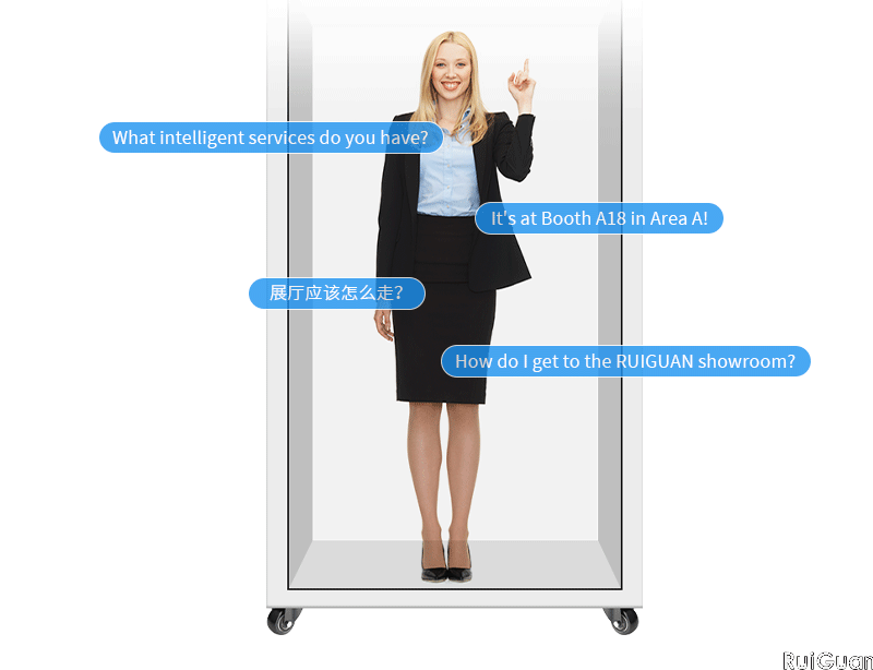 Ultra-realistic digital human imagery is achieved through AI cloning technology with lip-sync error <1 frame, supporting 16.7M color display and 89° full viewing angle. Equipped with an 8-array directional microphone and dual 10W stereo speakers, it can respond to audience questions for multi-turn conversations, combined with body movements and facial expressions to create anthropomorphic interaction.