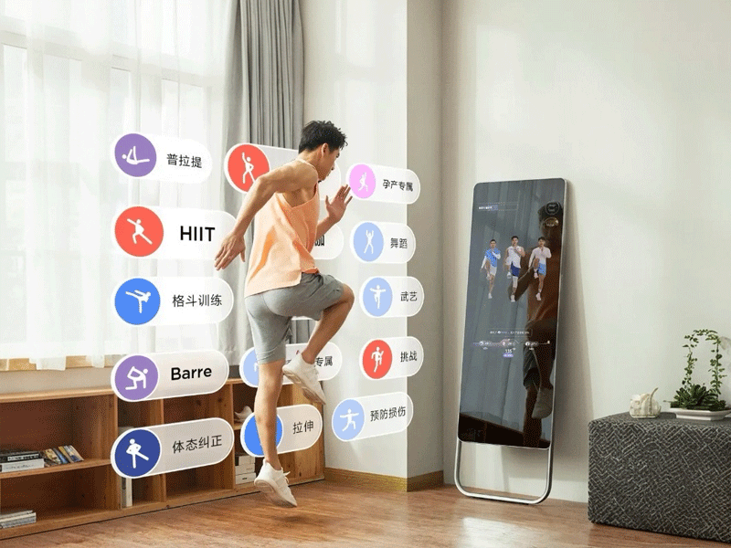 The comprehensive product matrix ranging from 32 to 75 inches undergoes dual validation through ergonomic and spatial acoustic testing. Compact 32-43 inch models designed for home fitness corners feature ultra-narrow bezels (≤2.8mm) to maximize viewable areas, supporting both wall-mounting and equipment-embedded installations. Their mirror curvature, validated through 2,000 fatigue tests, guarantees distortion-free reflections across diverse training postures. Commercial-grade 50-55 inch flagship variants integrate an innovative Multi-Angle Dynamic Tracking Module, utilizing millimeter-wave radar arrays along the edges to detect user movement within a 5-meter radius. The system automatically adjusts content orientation and font size, ensuring core data remains centered in the user's field of vision during lateral movements—solving visibility challenges for off-center participants in group classes. Large-format 65-75 inch models feature an Ambient Light Synchronization System with 32 embedded light sensors that continuously monitor gym illumination, dynamically calibrating color temperature and contrast every 0.1 seconds to maintain consistent image quality across yoga studio soft lighting and boxing zone intense beams.