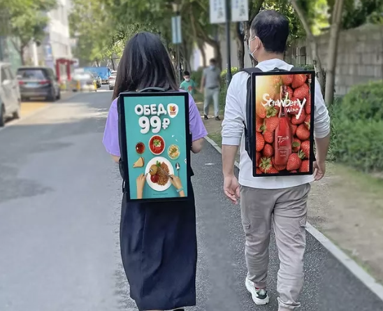 The Packback Advertising Machine is a mobile digital signage solution that combines portability, high-brightness display, and intelligent system integration, specifically designed for outdoor promotional use. Styled as a wearable backpack, it features a high-definition LCD screen with a resolution of 1920×1080 and adjustable brightness ranging from 350 to 1000cd/m², ensuring clear visibility even in direct sunlight.