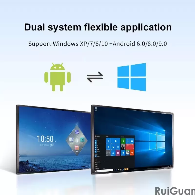 In operation, the LCD display screen of the teaching and conference integrated advertising machine switches between Android and OPS system with one button, without restarting, which is easy for novices to use.