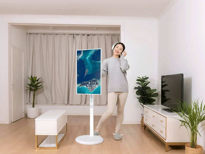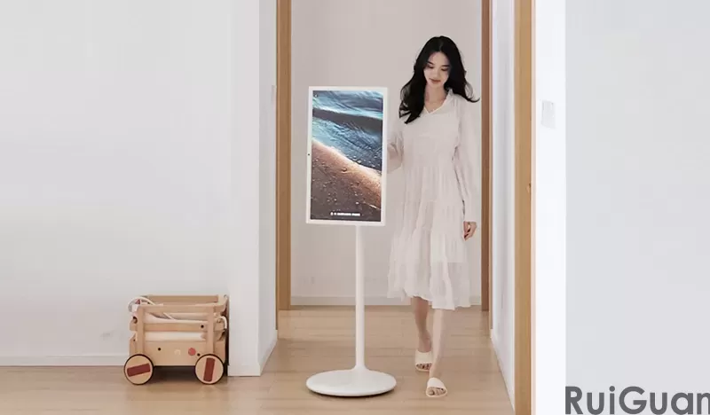 The bottom of the Ruiguan Mobile Smart Screen Z5 portable TV is equipped with 5 silent universal wheels, supporting 180 ° vertical rotation and adjustment of elevation angle of 30 ° and depression angle of 25 °. Whether standing in the kitchen, sitting on the sofa in the living room, or lying on the bed in the bedroom, you can find the most relaxed viewing angle for watching dramas, truly realizing where you go and where you lead.