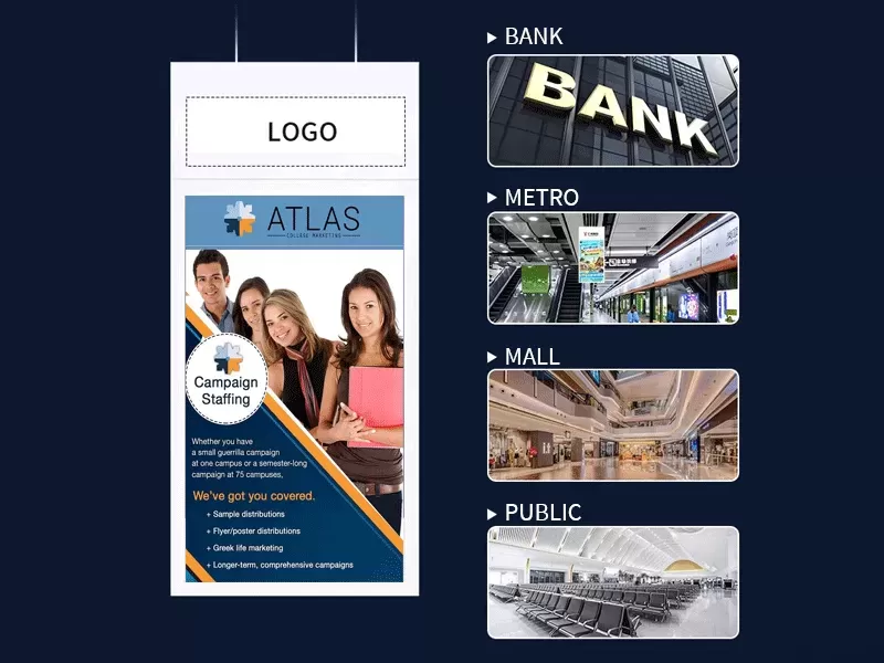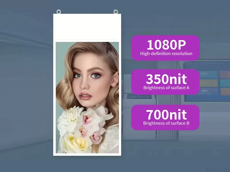 With the development of material technology, the new generation of hanging advertising machines has begun to use composite materials: nanowires are embedded in tempered glass to achieve touch function without affecting transparency; the back shell uses magnesium-aluminum alloy to further reduce weight; and photocatalyst components are added to the surface coating to achieve self-cleaning function. These innovations will continue to improve the performance of hanging advertising machines and create more possibilities for commercial displays. Choosing hanging advertising machines made of professional materials is not only a purchase of equipment, but also a long-term investment in the value of commercial space.