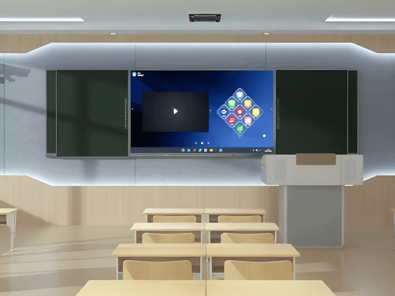 Nano-screen upgrade of intelligent terminal: integrate the functions of projector, curtain, TV, tablet, computer and audio, replace the traditional multimedia equipment, and simplify the classroom layout through integrated design.