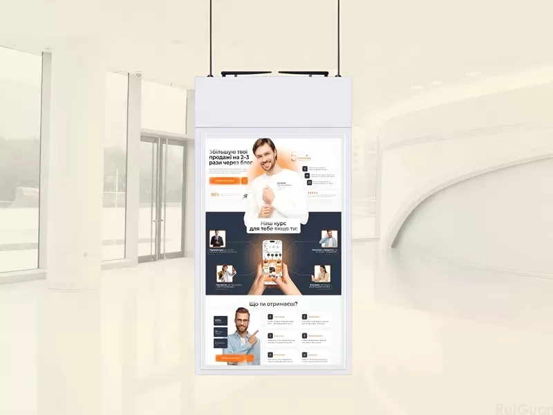 The 100-inch advertising machine redefines the visual scale of space. The 100-inch (7680×4320) screen is 1.25 meters high and 2.2 meters wide, and it still maintains a strong visual impact at a distance of 15 meters. Its engineering design breakthroughs include: modular cabinet design (single cabinet weight ≤25kg); front maintenance structure (maintenance channel ≥60cm); intelligent pixel correction technology (brightness consistency ≥95%). The application practice in the airport terminal shows that the brand recall of the 100-inch advertising machine is 4 times that of the 55-inch model, making it a veritable digital landmark.