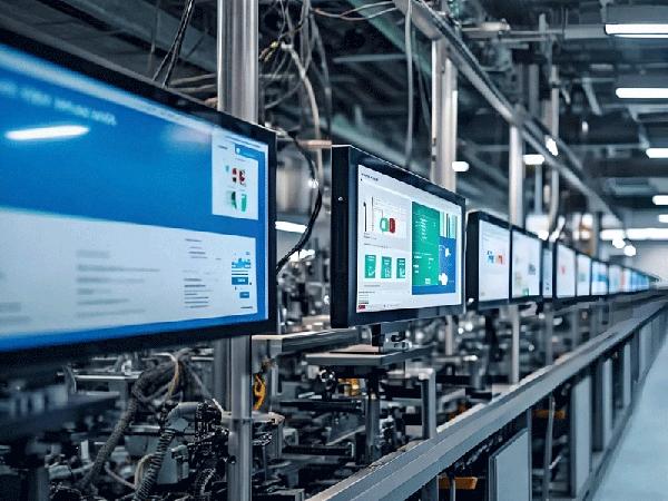 In the industrial manufacturing and automation workshop, Ruiguan industrial control integrated advertising machine display screen plays a key role.