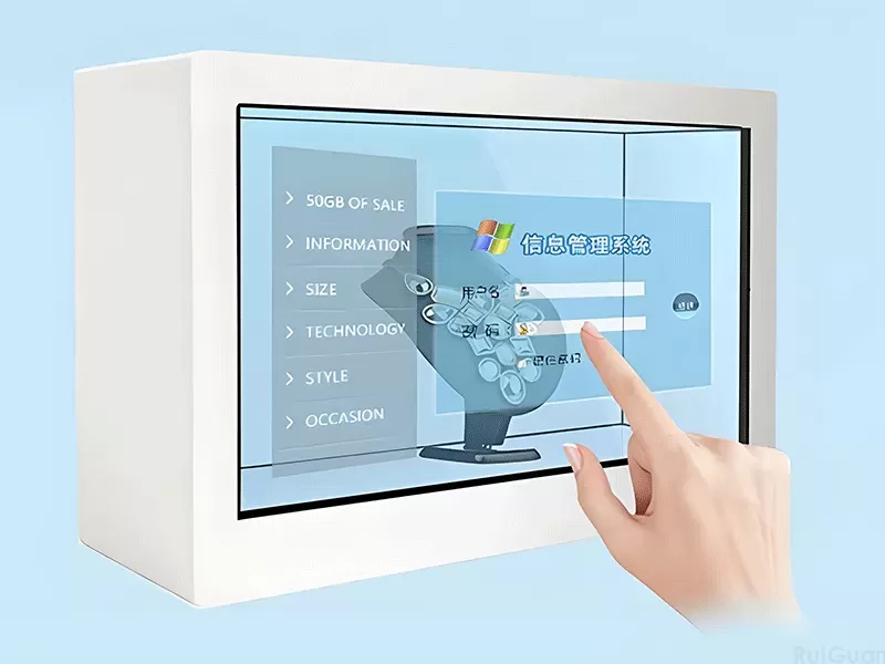 Do museu ao shopping Ruiguan IA digital man tela dupla de 43 polegadas