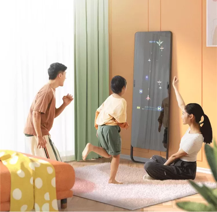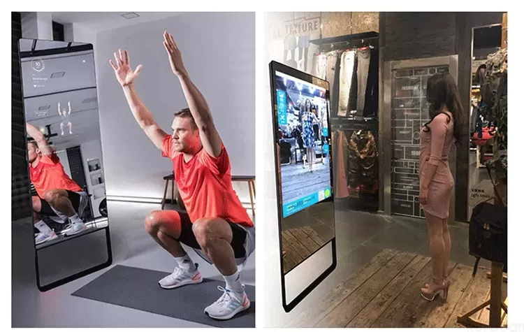 Nako-customize na 65 pulgadang interactive na digital signage na nagpapakita ng magic floor standing fitness mirrors touch screen