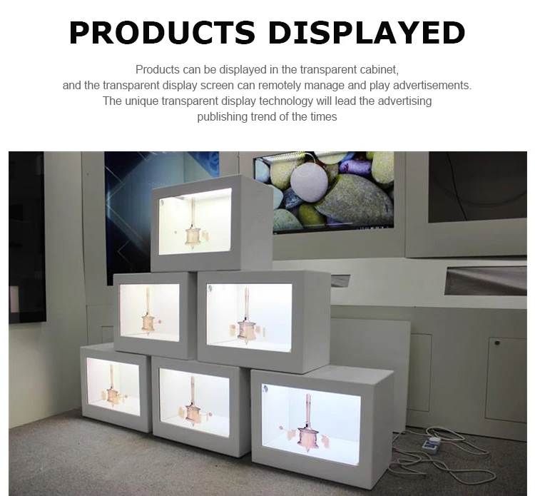 Products can be displayed in the transparent cabinet.and the transparent display screen can remotely manage and play advertisements.The unique transparent display technology will lead the advertisingpublishing trend of the times