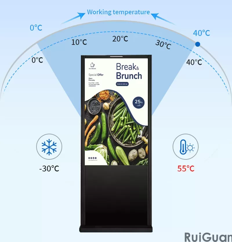 Outdoor advertising machines are divided into outdoor LCD advertising machines and outdoor LED display screens. They can display your information outdoors regardless of weather, bringing good visual and auditory enjoyment to outdoor information dissemination. It can be widely applied to outdoor advertising playback, outdoor public information release, outdoor media communication, touch interactive query and other fields.