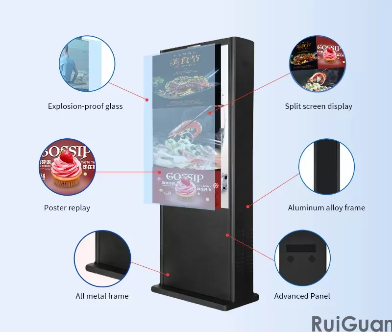 Ruiguan Factory Supply Outdoor IR Touch Panel LCD Floor Standing Digital Kiosks Signage Advertising Display Screen