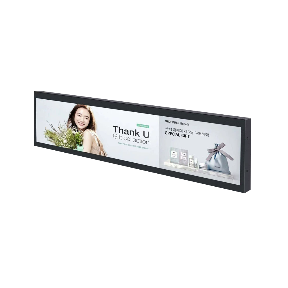 Wall mount ultra wide Strip shelf edge advertising monitor stretched bar lcd display screen
